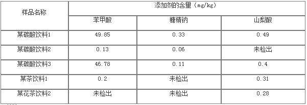 綜上所述,通過對各種汽水、飲料進行測試,本方法前處理簡單、方便快捷、靈敏度高、回收率高、精密度好,且試劑用量少,避免大量化學試劑的使用,減少環境污染。本方法用來測定食品中添加劑苯甲酸、山梨酸、糖精鈉的含量簡單、可靠。