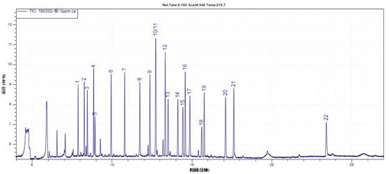 測定方式:TICFULL SCAN)定性(掃描范圍:45-450amu),SIM模式定量。